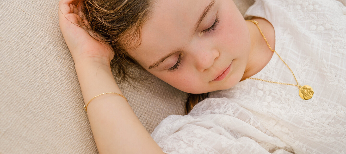 Médaille Vierge à l'enfant - Amour Maternel - Or jaune 18ct