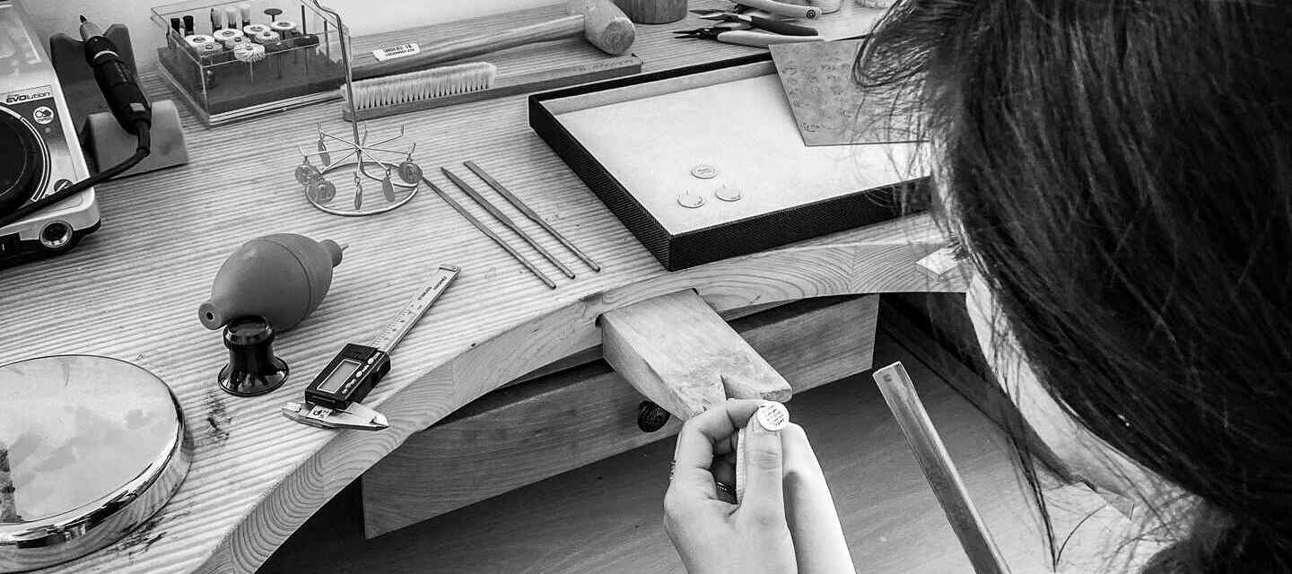 Mickaële, notre chef d'atelier a suivi l'enseignement de la célèbre école Boulle, tout comme Marie qui gère aussi nos précieux stocks de bijoux. Athénaïs et Agathe sont, quant à elles, diplômées d'autres formations en métiers d'art. Le travail de notre atelier est largement diversifié, mais sa principale activité repose sur la gravure des bijoux et objets d'orfèvrerie. Quel que soit le support (médaille, pendentif, gourmette, couverts, accessoires décoratifs...), le cadeau que vous souhaitez offrir sera personnalisé et unique. Nos artisans bijoutiers, si talentueux, véritables experts dans leur domaine peuvent créer également, avec vous et pour vous, des modèles exclusifs.
